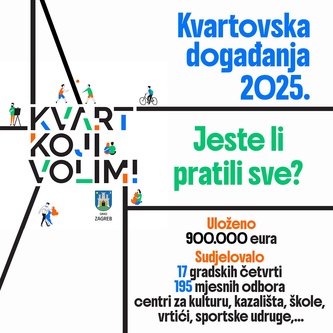 Program „KVART KOJI VOLIM“ nastavlja se i dalje! U godini pred nama očekuje nas više od 800 događanja, još više sadržaja, kulture, sporta i prilika da kvart ostane mjesto kojem se rado vraćamo!