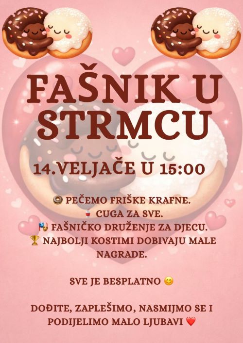 Za sve male, ali i one malo veće kreativce pripremljena je radionica izrade maski gdje ćete imati priliku pokazati svoju maštovitost i originalnost. Osim u izradi originalnih maski, posjetitelji će uživati i u pripremi ukusnih krafni i raznih kolača, kako bi druženje bilo još zanimljivije i veselije.