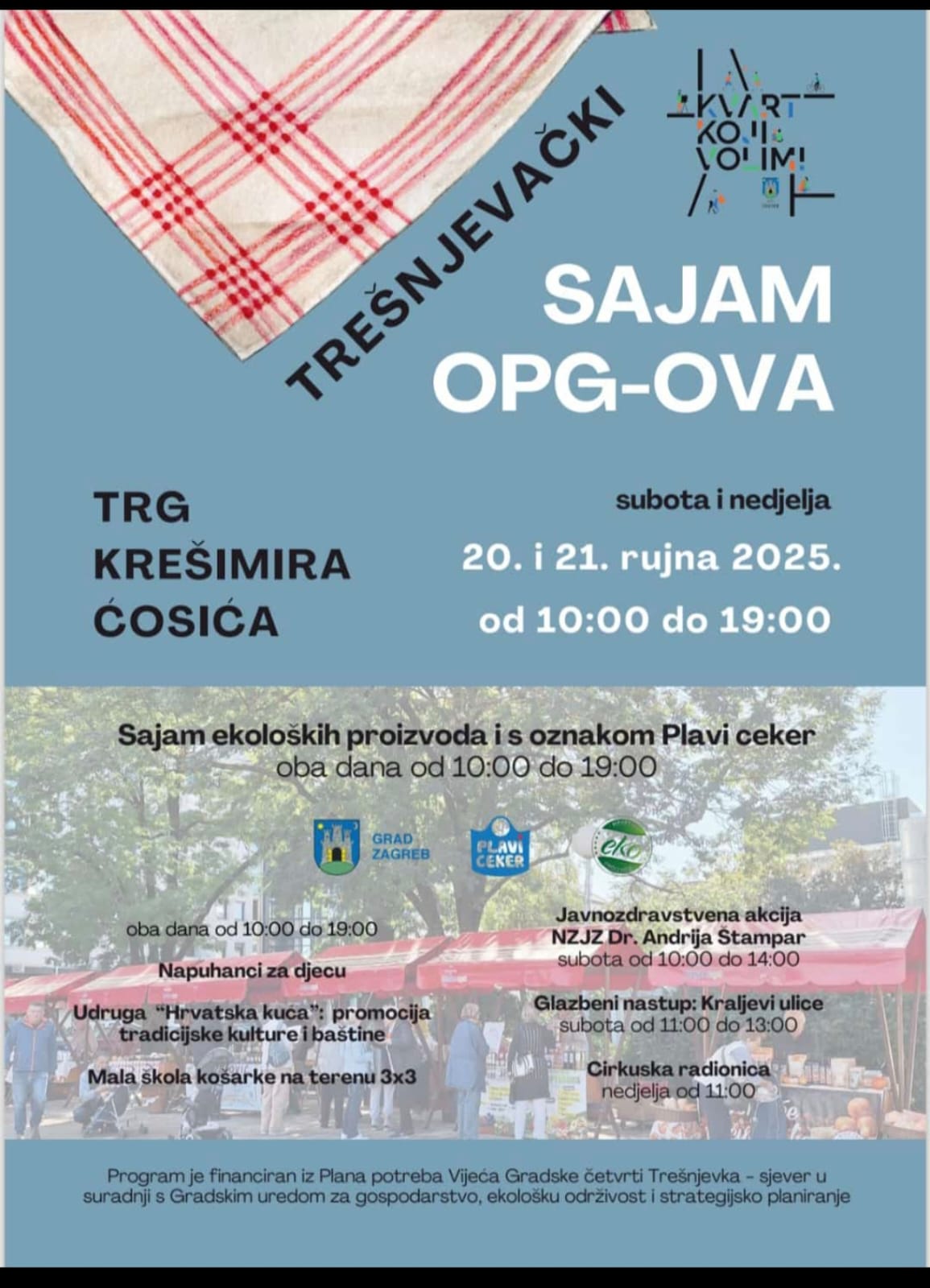 Vrijeme je za svježe, domaće i fino! Na još jednom Trešnjevačkom sajmu OPG-ova očekuju te raznovrsni lokalni proizvodi - med, sirevi, domaći sokovi i još puno toga što stane u tvoju košaricu.